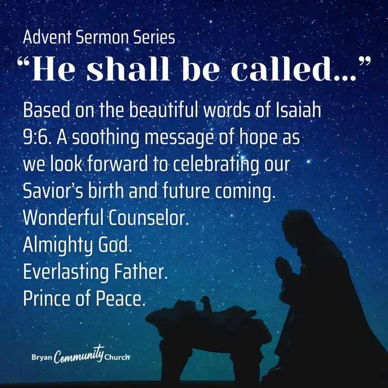 Rev. Shelby continues the Advent Sermon series, entitled "He shall be called...". Based on the beautiful words of Isaiah 9:6. A soothing message of hope as we look for...